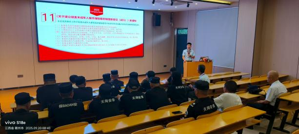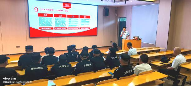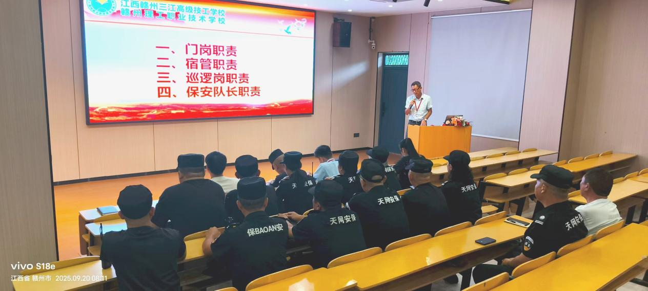 9月20日,为加固校园安全堡垒、提升安保队伍专业素养与应急能力,我校于学术报告厅召开校园安保人员专项培训会议,全体安保队员及管理负责人参与。