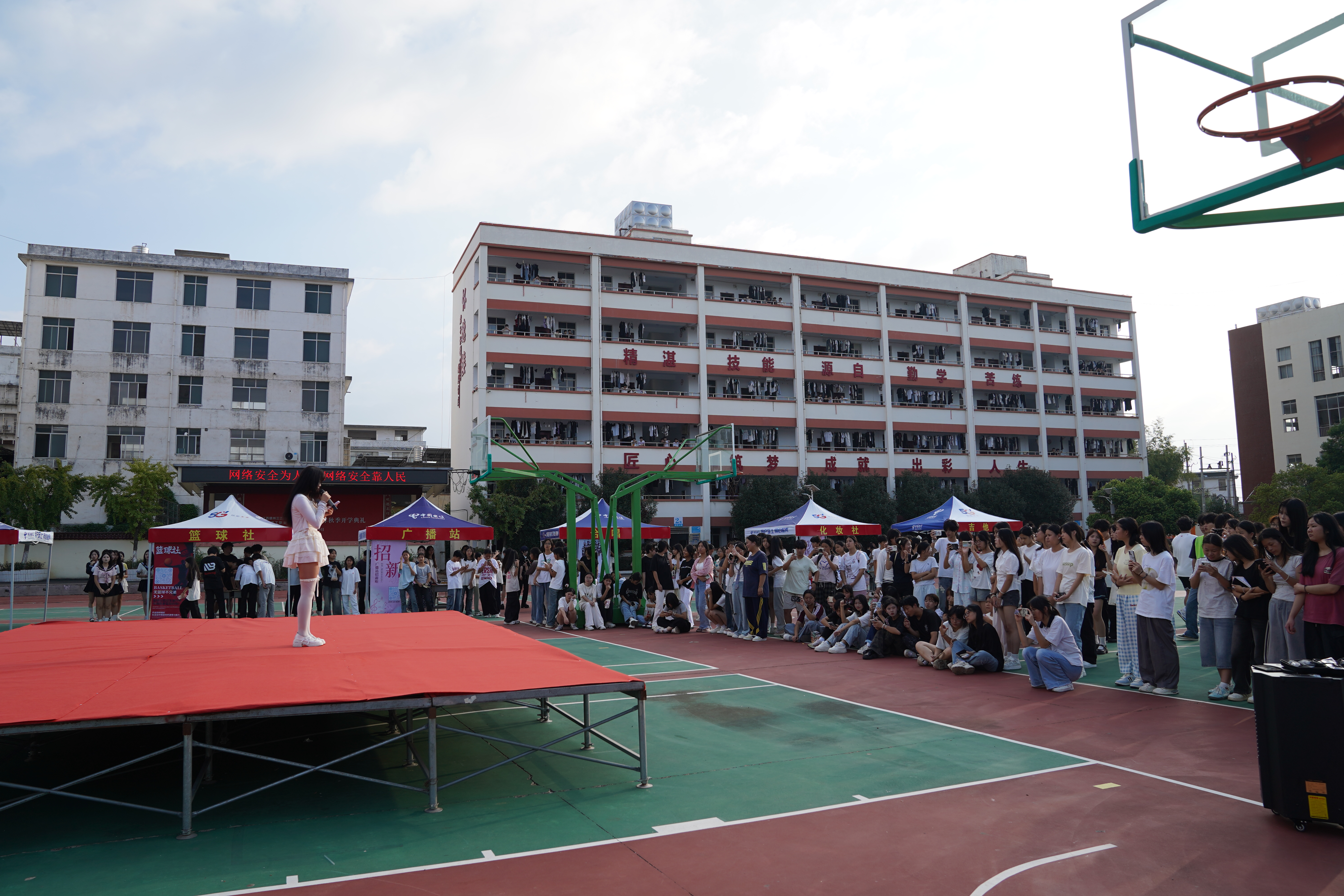 为丰富学生课余生活,为校园文化注入多元活力,9月22日下午,我校举办了一场精彩纷呈的社团招新活动。从文艺类的合唱、舞蹈、乐器社团,到体育类的篮球、羽毛球、乒乓球社团,再到文化创意类的书法、手工、摄影、动漫社团,以及技能实践类的主持、礼仪、广播站、化妆、电竞社团,17个社团涵盖多元领域,满足了不同学子的兴趣需求,现场咨询、报名气氛十分火爆。