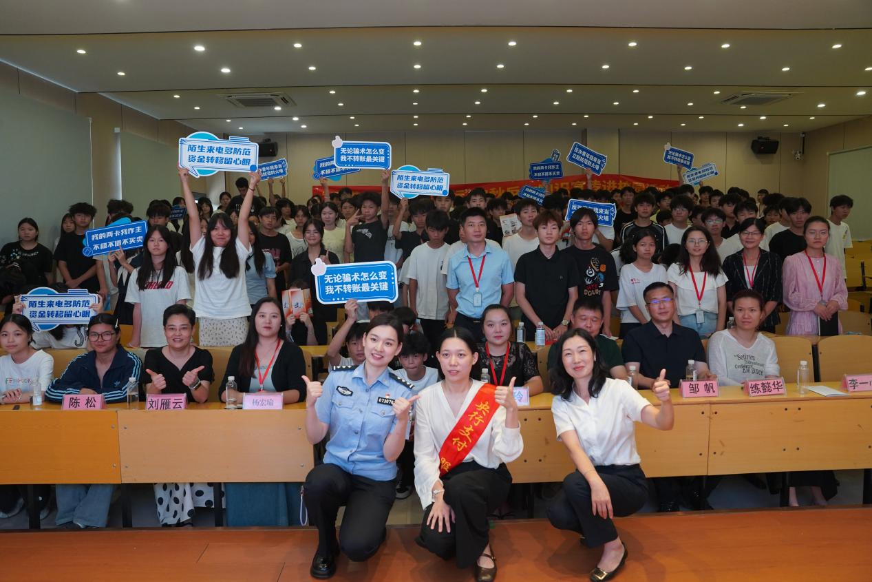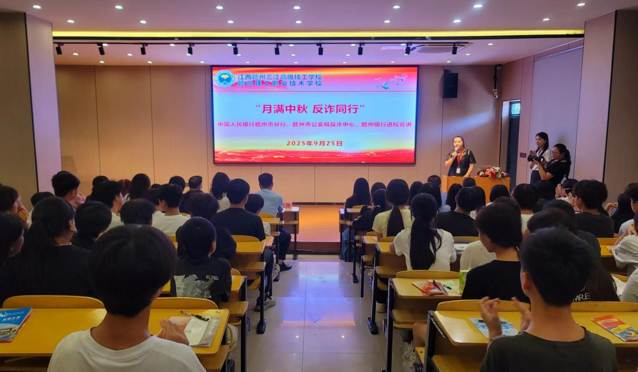 为切实提升学校学生的电信网络诈骗防范意识和金融安全素养,在中秋佳节来临之际,我校特邀赣州市公安局反诈中心、中国人民银行赣州市分行、赣州银行,共同举办《月满中秋、反诈同行》反诈知识宣传讲座。赣州市公安局反诈中心、中国人民银行赣州市分行、赣州银行部分领导嘉宾,校领导杨宏瑜、林玲莅临现场,与师生共同参与这场“安全防护课堂”。