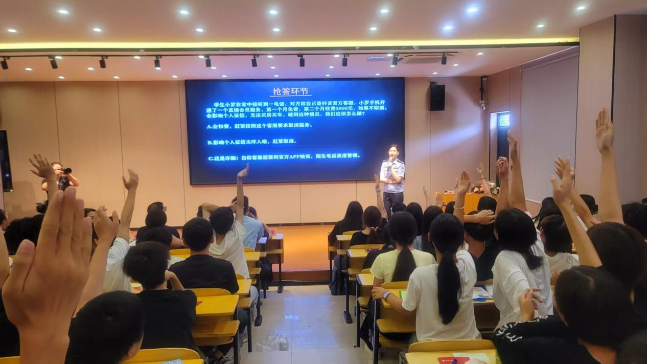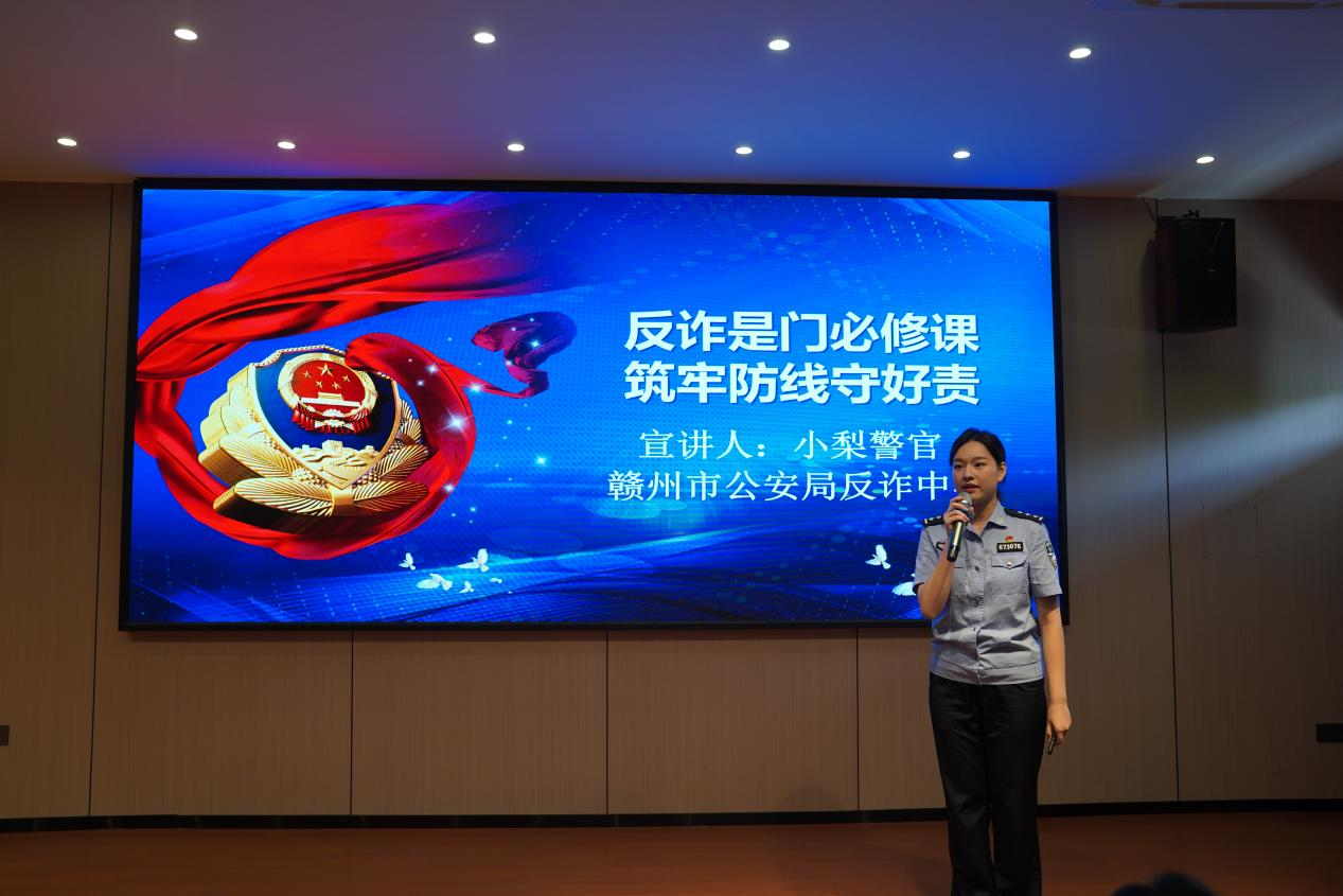 反诈知识宣讲,以案为鉴,警钟长鸣。赣州市公安局反诈中心小梨警官“以“校园高发诈骗类型解析”为核心,结合真实的校园涉诈案例,如刷单返利、冒充老师收费、游戏账号交易诈骗、虚假校园贷等,深入剖析了诈骗分子的作案套路和话术陷阱。宣讲中,民警还播放了“涉诈回流人员采访”视频,通过违法人员的亲身经历,让同学们直观感受到诈骗的危害与代价。在互动环节,民警重点普及了110报警电话和96110反诈专线的功能,现场演示如何快速识别可疑来电和链接,教会同学们牢记“未知链接不点击、陌生来电不轻信、个人信息不透露、转账汇款多核实”的反诈口诀。