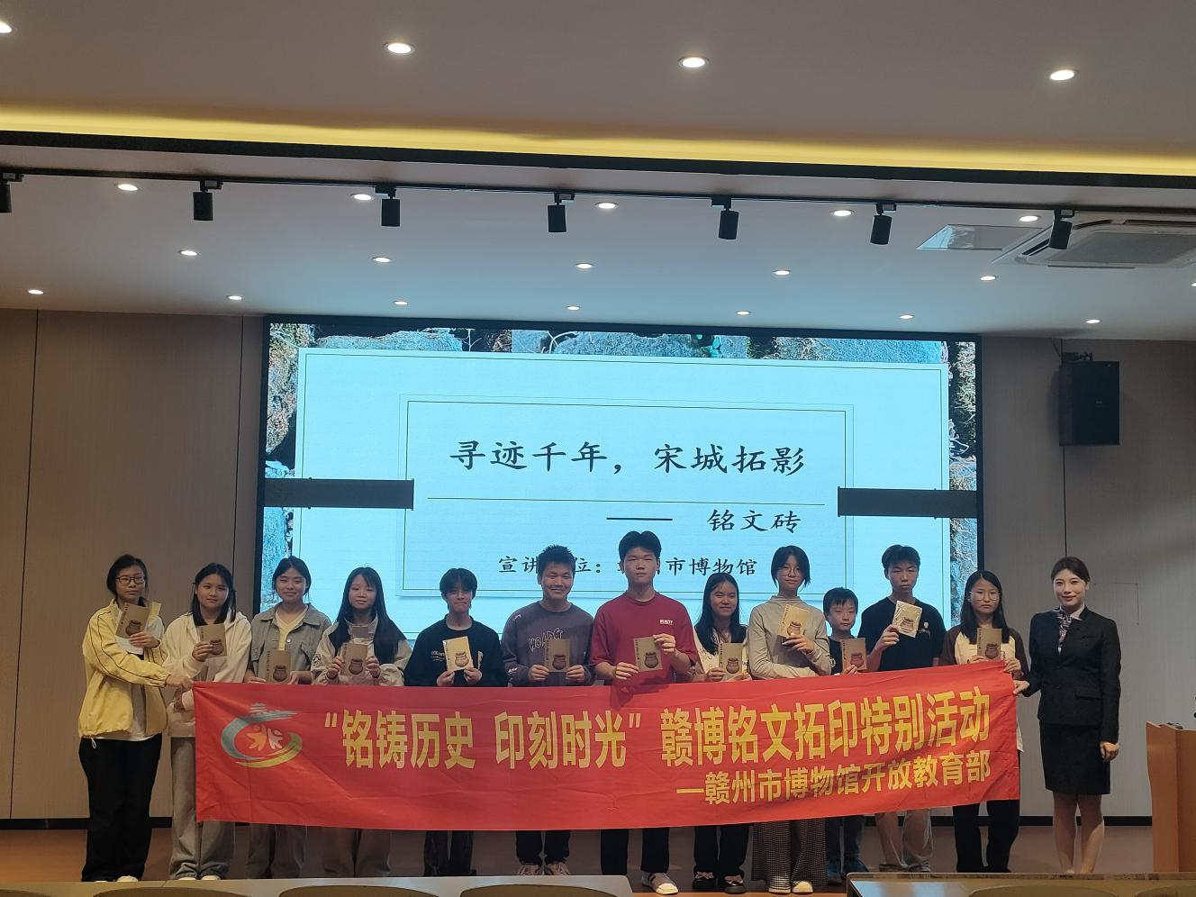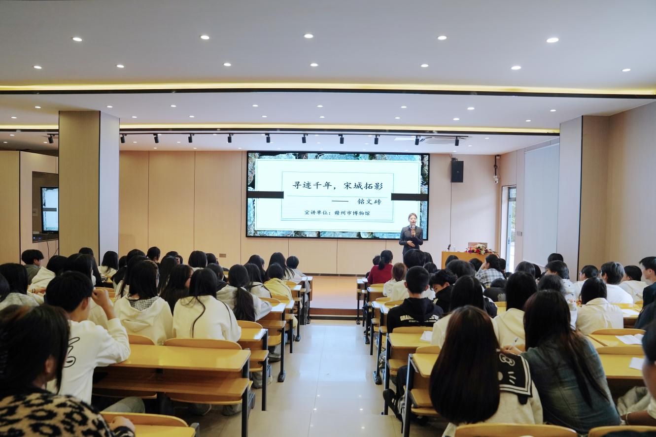 为弘扬中华优秀传统文化,增强学生历史文化素养,10月30日,我校邀请赣州市博物馆在学术报告厅隆重举办“铭铸历史 印刻时光”铭文拓印主题讲座。本次活动由学校领导杨宏瑜主持,赣州市博物馆黄琛老师担任主讲,讲座吸引了200余名学生聆听。