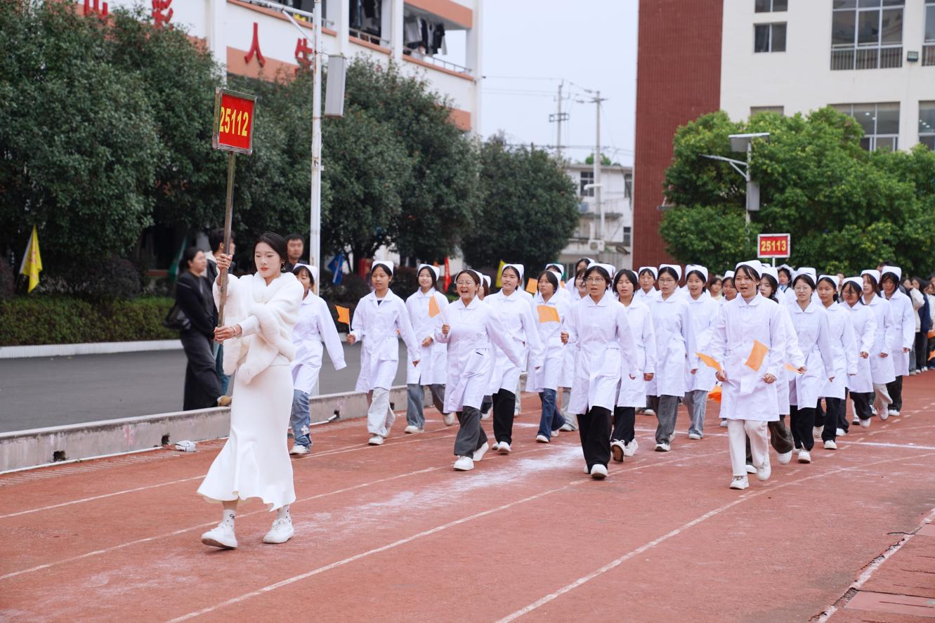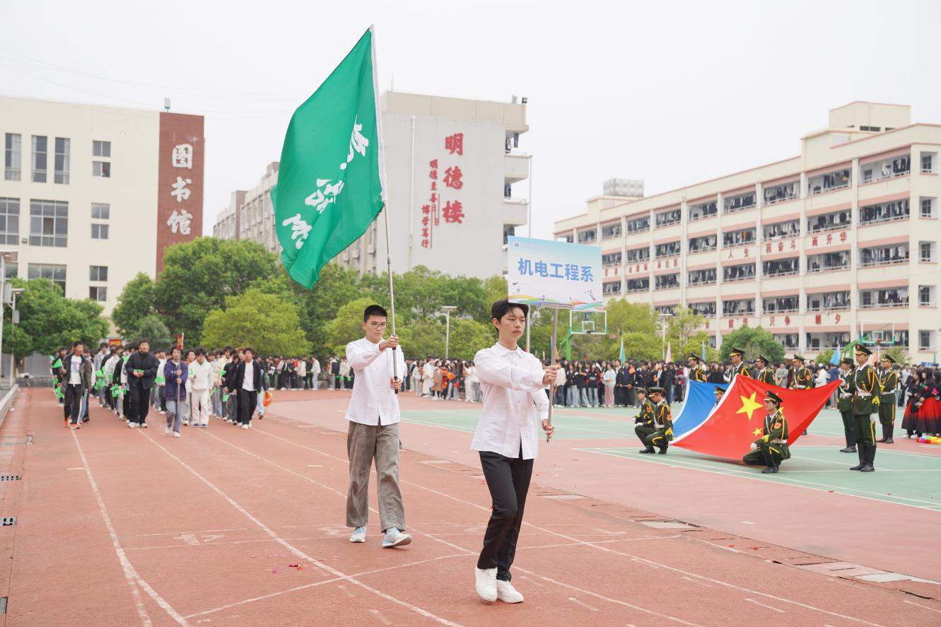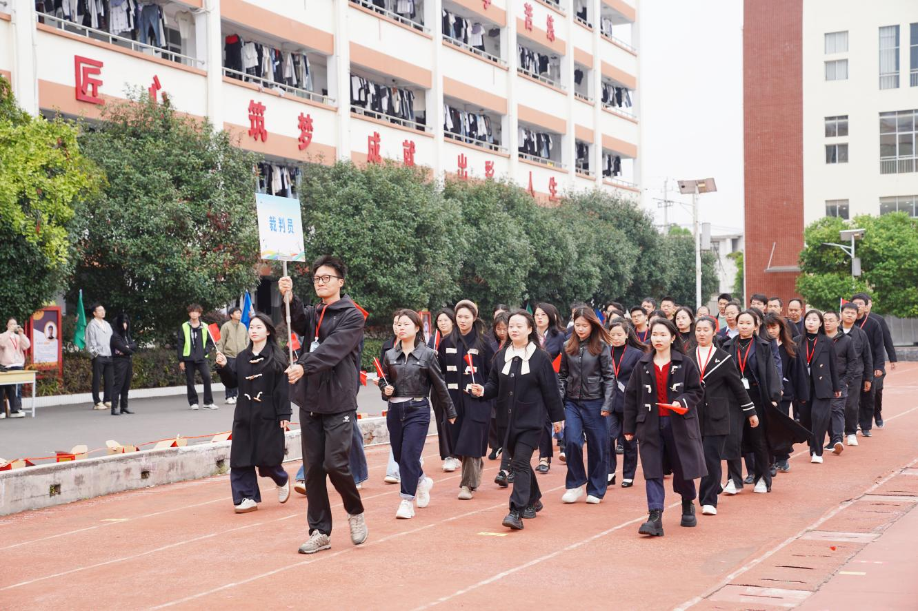 伴随着激昂的运动员进行曲,入场仪式正式拉开帷幕。国旗护卫队迈着铿锵有力的步伐,护送国旗、校旗、会旗率先入场,鲜艳的旗帜在晨光中迎风招展;彩旗、花球、花环、彩扇、社团联合方阵五大特色方阵及各系班级方阵依次入场,同学们精神抖擞、步伐整齐,嘹亮的口号彰显着青春风采;裁判员方阵着装规范、神情庄重,展现了公平公正的执裁理念。