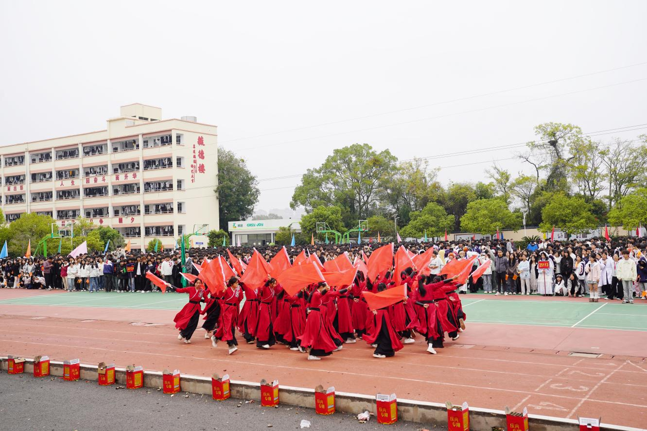 开幕式团体节目表演精彩纷呈,将气氛推向高潮。啦啦操《青春正燃》活力满满,武术《男儿当自强》刚劲有力,情景舞蹈《奇妙的朋友》温馨创意,集体旗舞《精忠报国》气势磅礴。最后,全体师生共同唱响校歌《梦想从这里启航》,熟悉的旋律寄托着对学校的深情与对未来的憧憬。
