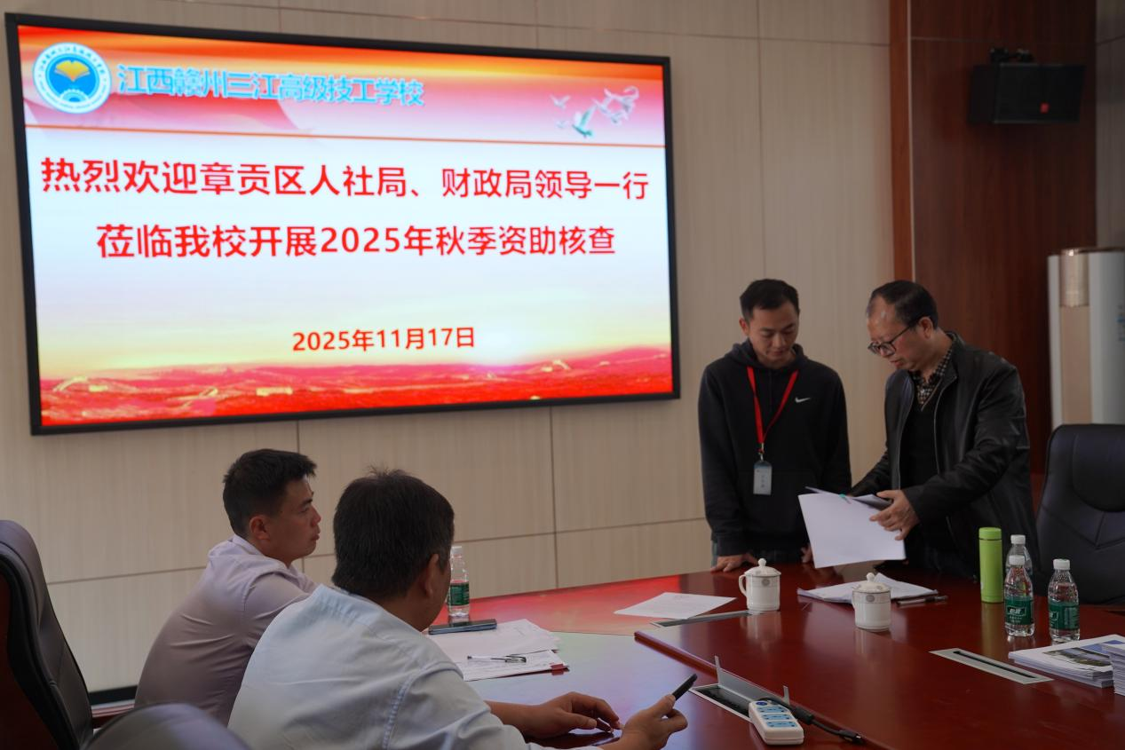 为进一步规范技工院校学生资助管理工作,确保资助政策精准落实,11月17日上午,章贡区人力资源和社会保障局资助工作检查组一行3人,对我校2025年秋季学期受助学生在籍情况、资助工作以及专项资金使用情况进行检查。