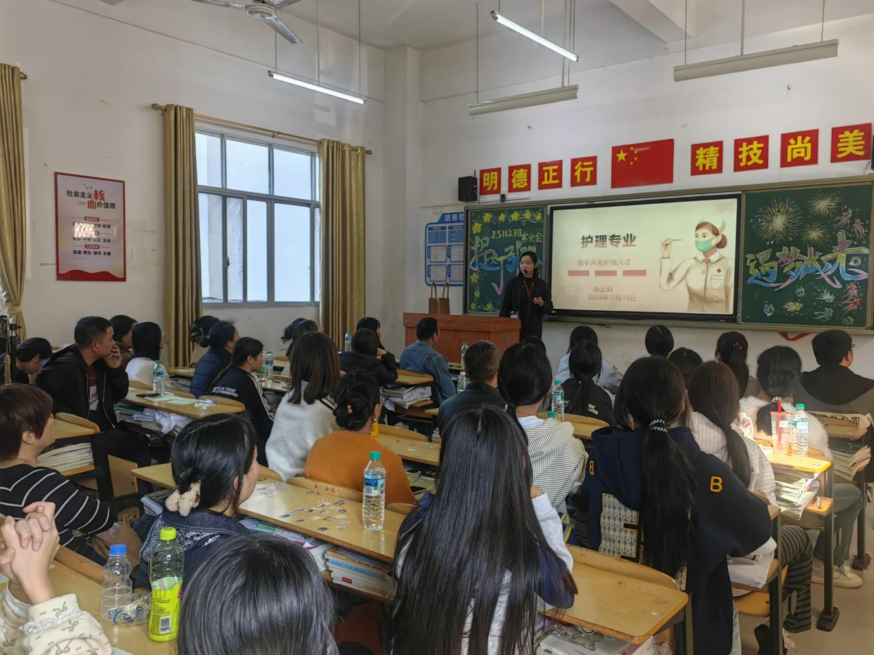 各班主任作为家校沟通的核心纽带,聚焦《预防未成年人犯罪法》《中小学教育惩戒规则(试行)》《中华人民共和国家庭教育促进法》的核心条款进行普及讲解,明确家校双方在学生教育管理中的责任与义务,针对家长普遍关心的学籍管理规定、国家资助政策等事务性内容进行细致说明,针对心理健康新十条要求、学校德育手册内容及安全管理细则,从学生心理疏导、职业道德培养、校园安全防护等方面提出具体要求,围绕学生专业发展规划、职业技能提升路径、行业就业前景等内容进行解读,引导家长结合孩子兴趣与特长,做好家庭教育与职业成长的衔接;同时对班级管理理念、学生在校学习状态、班风建设情况及后续培养重点进行了介绍。