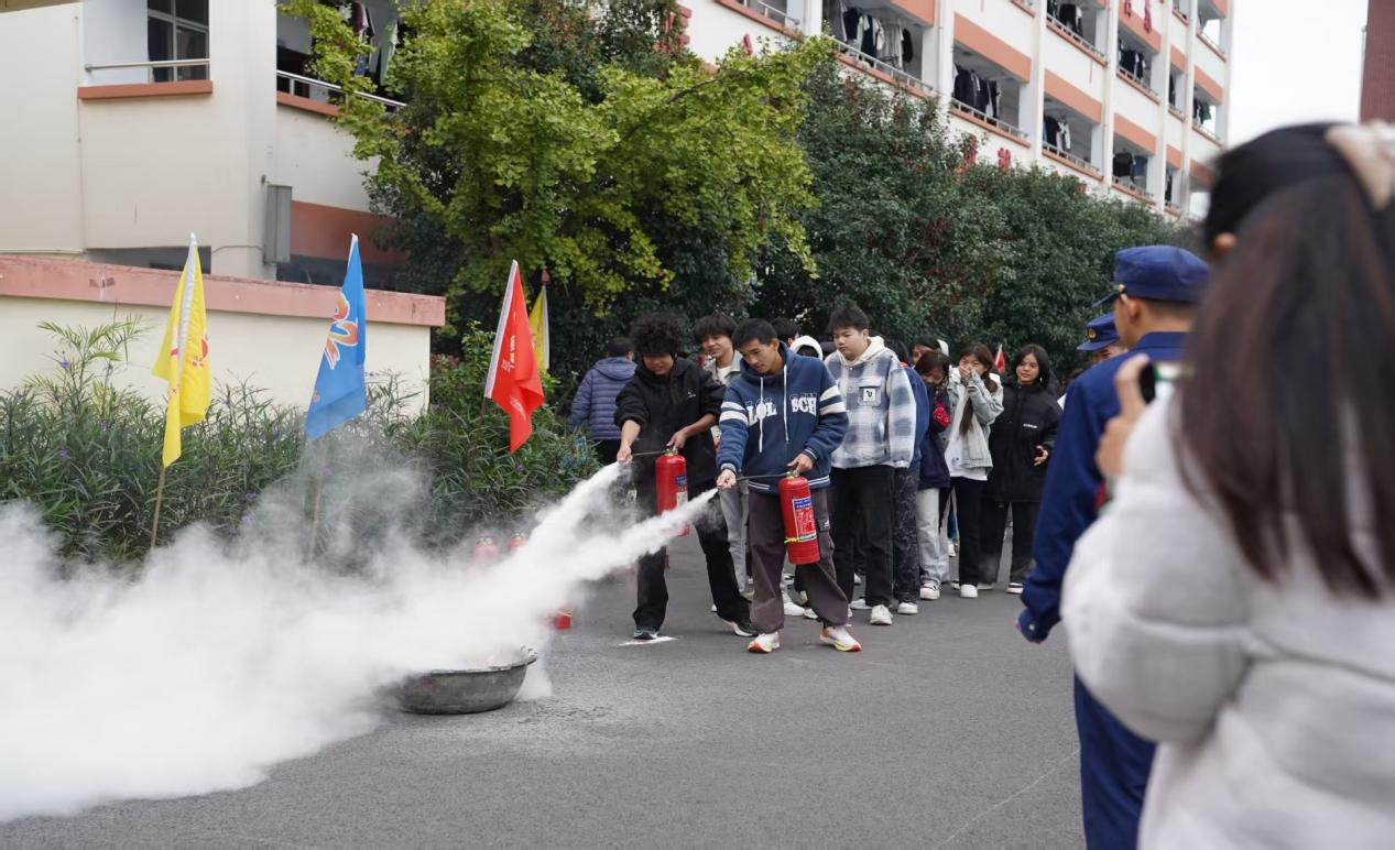 随后,消防人员为全体师生带来了一场生动的消防安全技能培训。他们现场讲解并演示了干粉灭火器的正确使用方法,并邀请师生代表进行实操体验,在实践中真正掌握了初期火灾的扑救方法。