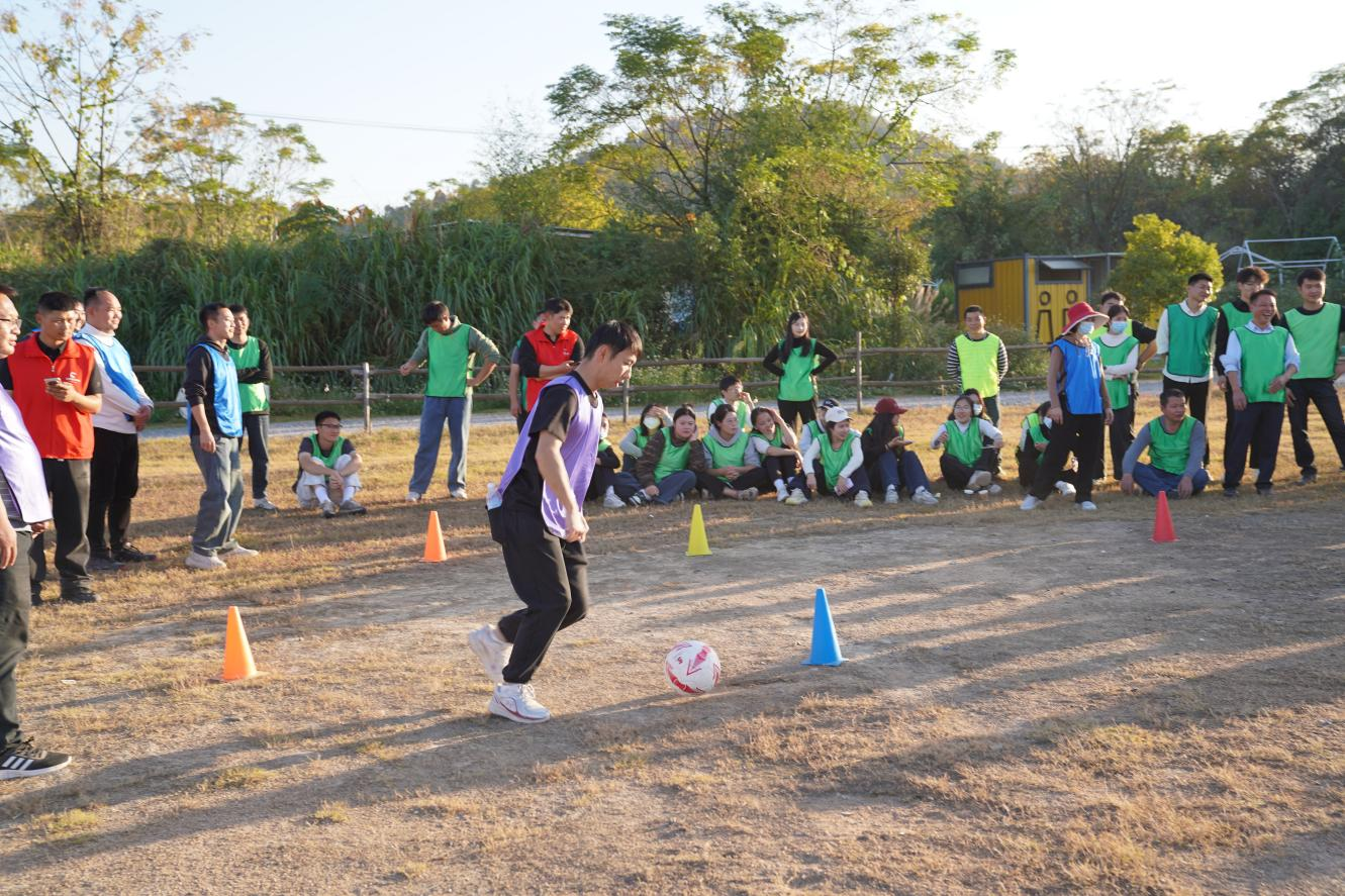 午餐过后,短暂的休息为教职工们积蓄了充足能量。下午的团建项目丰富多彩,飞盘积分赛中大家默契配合、灵活奔跑,展现出蓬勃的运动活力;拔河比赛现场,各队伍齐心协力、奋勇拼搏,呐喊声与欢呼声此起彼伏;足球趣赛则充满欢声笑语,让大家在轻松的氛围中增进了情谊,各类趣味小游戏的穿插更是让现场氛围持续升温。