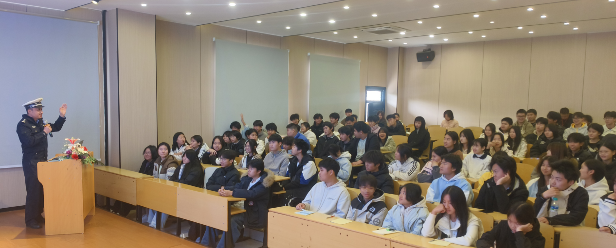 林石坤用专业引领,为全体走读生举办了一场生动的交通安全知识分享,结合辖区实际交通状况和中学生常见交通违法行为,以案说法,深入浅出地剖析了闯红灯、逆行、分心驾驶、追逐打闹等行为的严重危害,给学生们敲响了警钟。