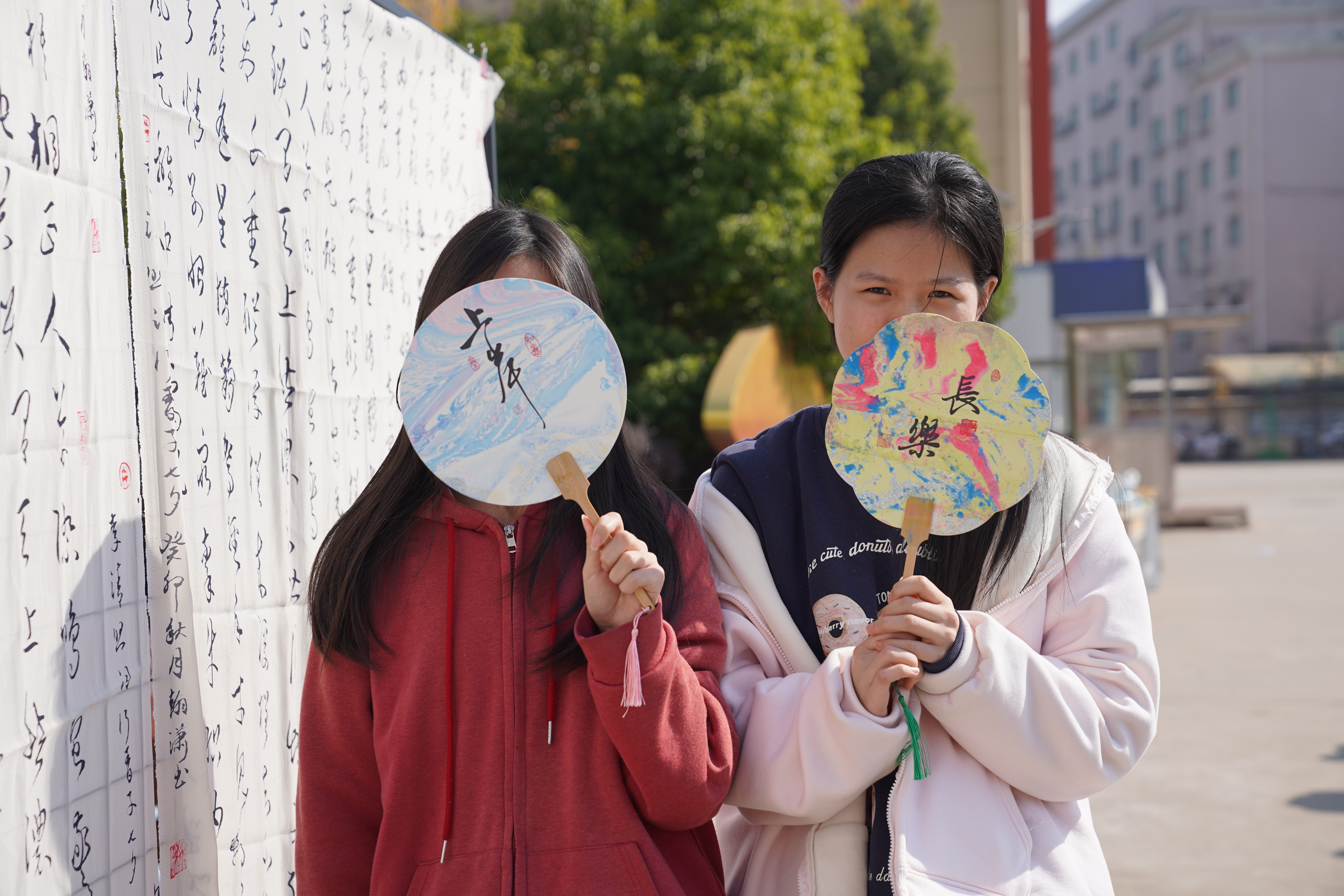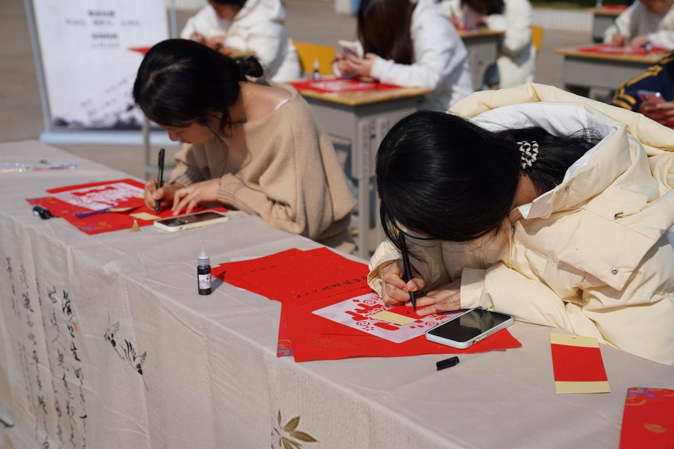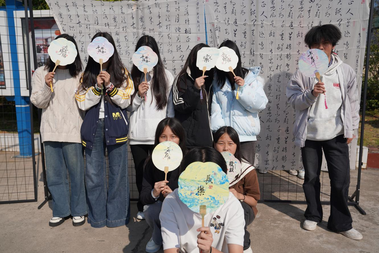 “笔墨传情·巧手造艺”活动则充满传统文化气息,书法社指导学生书写“福”字、手工社制作非遗漆扇,一件件饱含巧思的作品跃然眼前,尽显传统文化魅力。