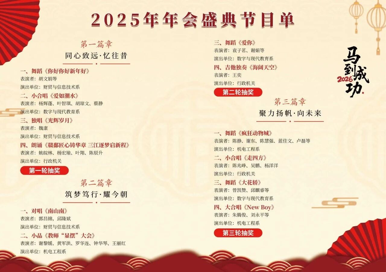 歌声袅袅辞旧岁,舞姿翩翩迎新春。整场年会在欢乐祥和的氛围中落下帷幕,既回望了2025年的耕耘与收获,也凝聚了2026年的信心与力量。新的一年,全体教职工将带着这份温暖与斗志,同心筑梦、聚力前行,以实干担当的精神驭风而上,勇毅笃行,共同书写学校发展新篇章!