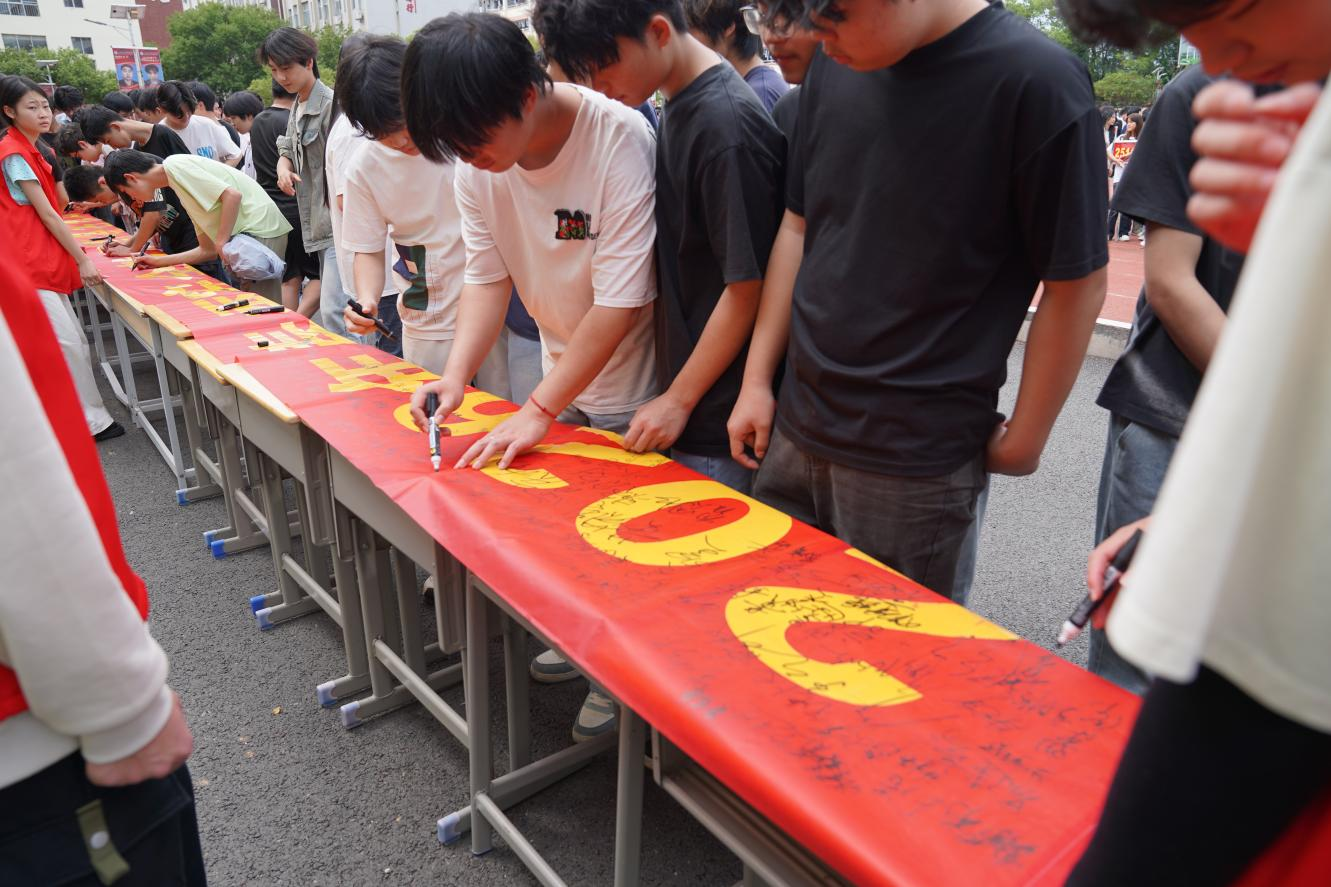 集体签名环节。“珍爱生命·严防溺水”主题横幅缓缓展开,各班级学生代表有序上台签名,一笔一画承载着对生命的敬畏,彰显着守护安全的决心。签名结束后,领导与学生代表在横幅前合影留念,定格这一庄严而有意义的时刻。